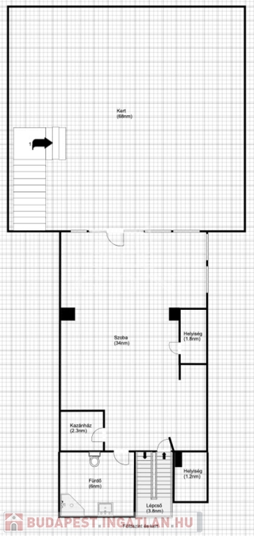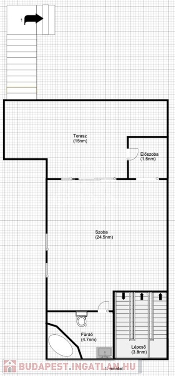 Belső terek jelenleg az emeleten 34nm, de az említett átalakítással 41nm-re bővíthető, az új terasz 10-15nm méretekig bővíthető.