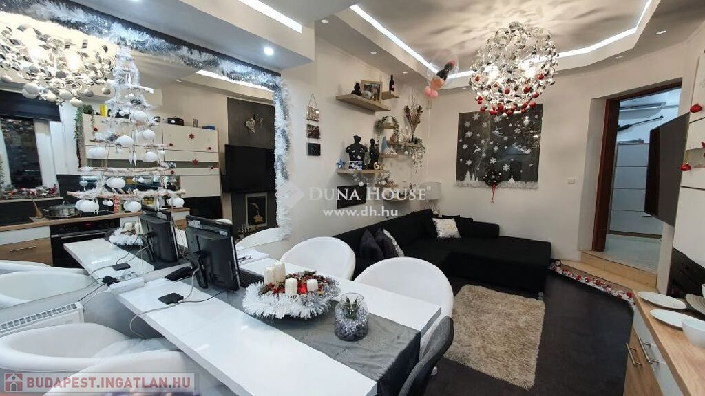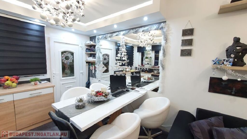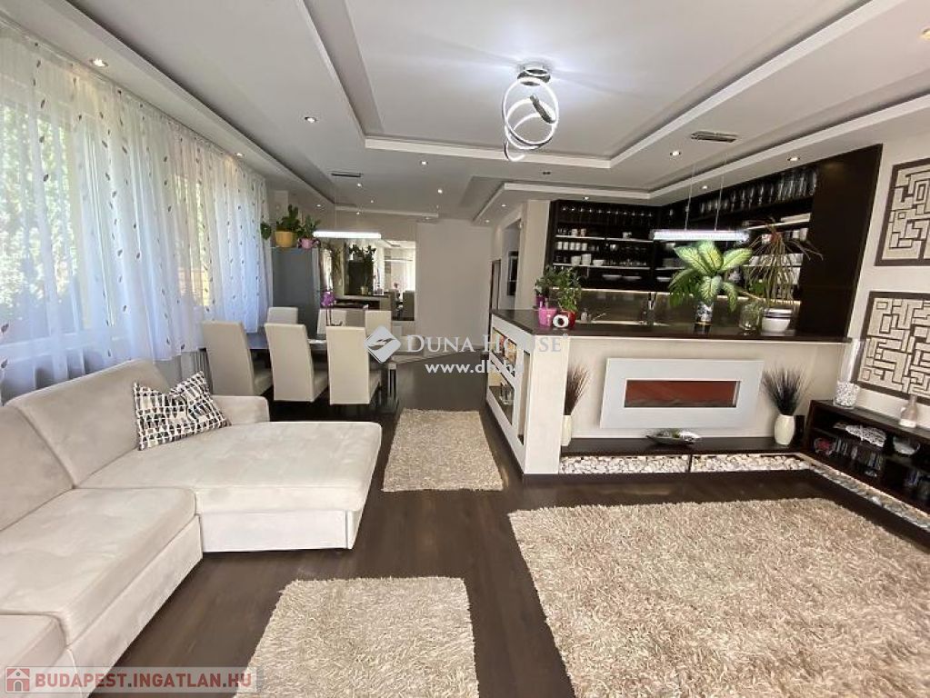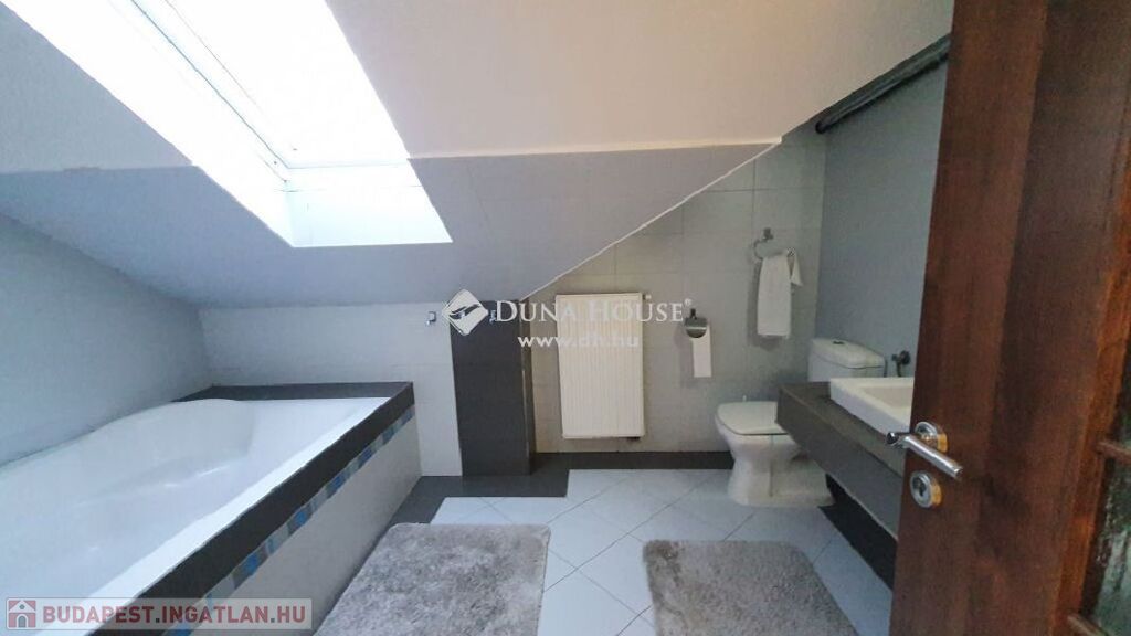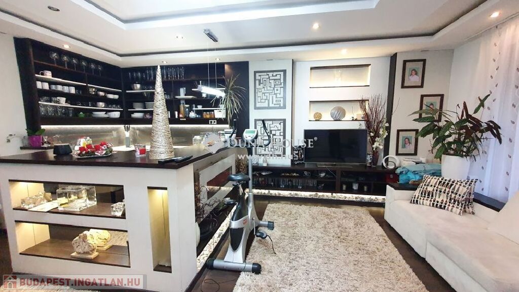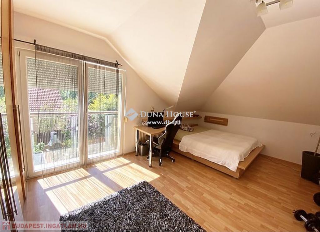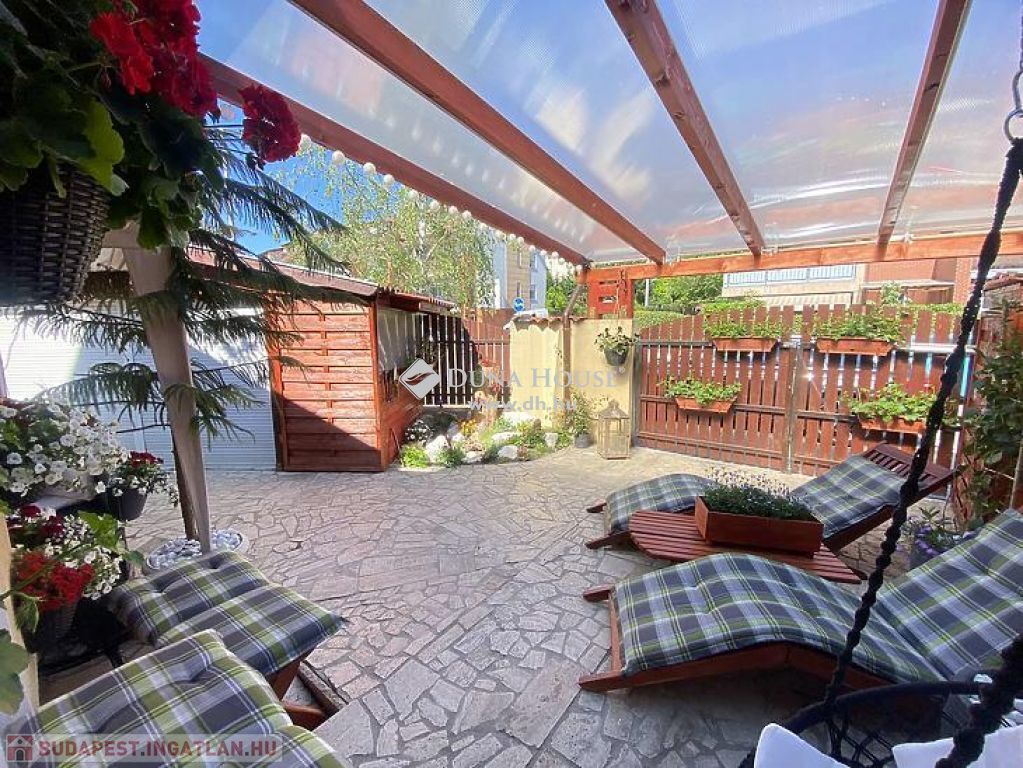 központhoz közel, mégis csendes, átmenő forgalomtól mentes utcában, 2 generációs kitűnő állapotú, modern, stílusos, sok extrával felszerelt ikerház fél eladó.A ház 380 m2-es telken áll, jelenleg 2 lakrészből áll, összesen bruttó 165 m2, 6 szobával és egy 17 m2-es fedett terasszal rendelkezik, dupla komfortos, szép világos, kellemes, otthonos, jó terekkel rendelkező, igény szerint akár tovább alakítható,A ház 2006-ban épült, 38-as Porotherm téglából, és 10 cm-es dryvit, szigetelést kapott.A ház téli teljes rezsiköltsége 46 000 Ft.A 2 szint között betonfödémmel ellátott, a tető Bramac cseréppel fedett.A fűtés és a meleg víz ellátás cirkó berendezéssel megoldottA ház hő és hangszigetelt nyílászárókkal, redőnyökkel és szúnyoghálóval felszerelt.A burkolatok mindenhol jó minőségűek, és szép állapotban vannak.Az ingatlan 2 generációs jelen pillanatban, de könnyen visszaalakítható, egybe nyitható ahogy korábban volt, ebben az esetben van lehetőség egy fűtött garázs visszaállítására is, de tovább is bővíthető a ház akár 3 teljesen szeparált külön lakrészre is.A ház riasztó és klíma berendezéssel felszerelt.1 lakrészben jelenleg:-amerikai konyhás nappali- egy hálószoba,- fürdőszoba +WC,- kamra- külön leválasztott kertrész van2. lakrészben, ami belső 2 szintes jelenleg:-amerikai konyhás nappali, innen nyílik a terasz, és kert kapcsolat-3 hálószoba az emeleten,- fürdőszoba,- külön WC,- kamra,padlástér is innen érhető el ahol még 30 m2 szabadon alakítható, akár bővíthetőA kert parkosított, öntözőrendszerrel ellátott.A kertben van egy medence, egy kerti tó, és egy fúrt kút is.Jelenleg 2 db autóbeállási lehetőség van, amelyből egy fedett és egy fedetlen beállásra van hely.TV és internet szolgáltatást jelenleg a T-Home biztosítja.Extrák:- földszinten kisebb lakrészben a nappaliban padlófűtés.- 2 tároló az udvarban (12 nm-es, 6 nm-es)- Klíma- Elektromos kandalló- Fúrt kút- Kerti tó- Medence- RiasztóA vételár részét képezi a konyhabútor, a klíma berendezés, az elektromos kandalló, riasztó berendezés, igény szerint egyéb berendezések megállapodás tárgyát képezik.A környék nagyon jól ellátott, bevásárlás, iskola, óvoda, bölcsőde, központ, közlekedés, Duna part, percek alatt elérhetőek.