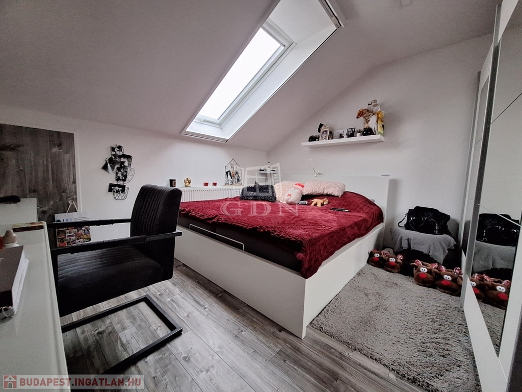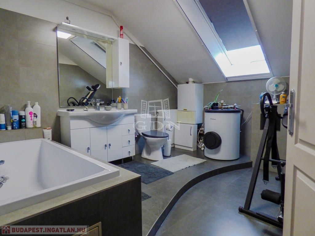 Dunakeszin, Alag város részen, kertvárosi környezetben, 480 nm-es sarok telken lévő, 2002-ben és 2007-ben épült, teljeskörűen felújított (új tető), vasbeton födémes (a kis lakrész fafödémes), két szintes, szigetelt (8 cm dryvit), bruttó 170 nm-es, 6+1 fél szobás, Keleti fekvésű, 2 GENERÁCIÓS (külön albetétes), gáz cirkó fűtéses (radiátoros hőleadással), központi klímás, műanyag thermo nyílászárós (redőnnyel, rovarhálóval), vízlágyítóval, riasztóval, kamerával felszerelt, rugalmasan birtokba vehető, családi ház eladó.