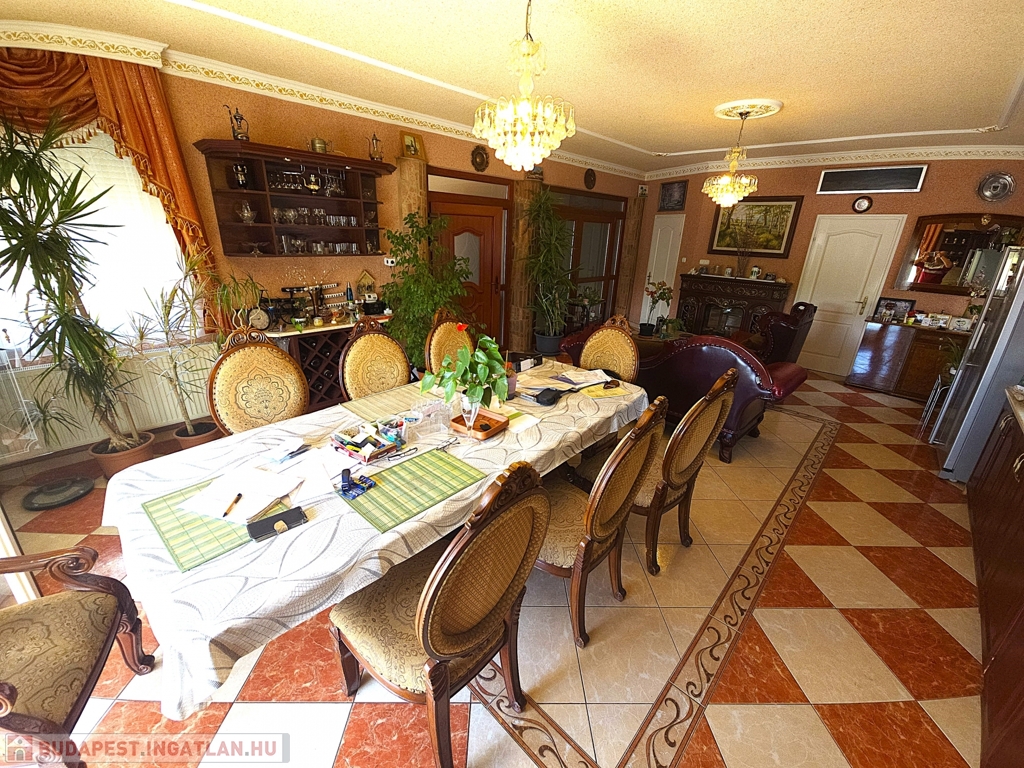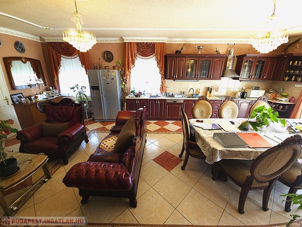 A ház összesen 314nm lakóterülettel rendelkezik, mely két teljes értékű szinten helyezkedik el. Az ingatlan belső elrendezése rendkívül átgondolt és praktikus. Hét teljes értékű szoba és félszoba található benne így tökéletesen alkalmas akár nagycsaládosoknak, kétgenerációs együttélésre, vagy otthoni irodai munkára is. Négy darab, ízlésesen kialakított, minőségi burkolattal ellátott fürdőszoba gondoskodik a lakók maximális kényelméről, mindegyik a mai igényeknek megfelelő színvonalon lett kialakítva. A belmagasság 2,8 méter, ami tovább erősíti a tágas térérzetet és az elegáns enteriőrt.