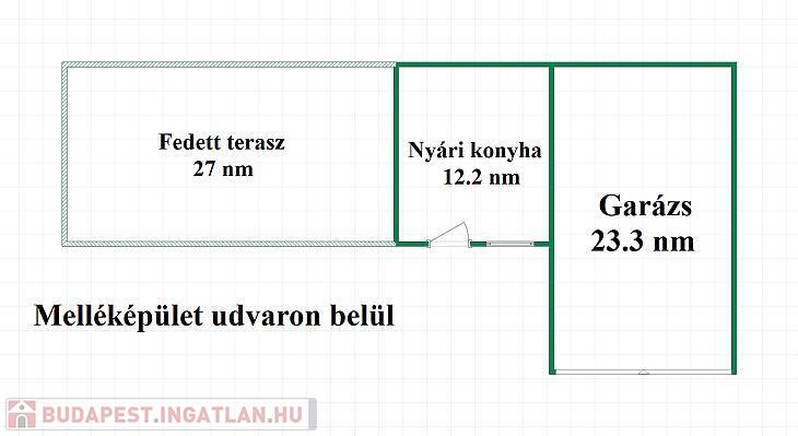 62 nm-es fedett terasz, külön tároló, garázs, nyári konyha és sütőgető.