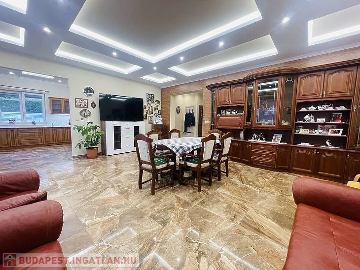 A ház kifogástalan állapotban van, minőségi burkolatok, tágas terek jellemzik.
