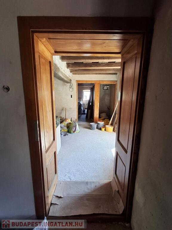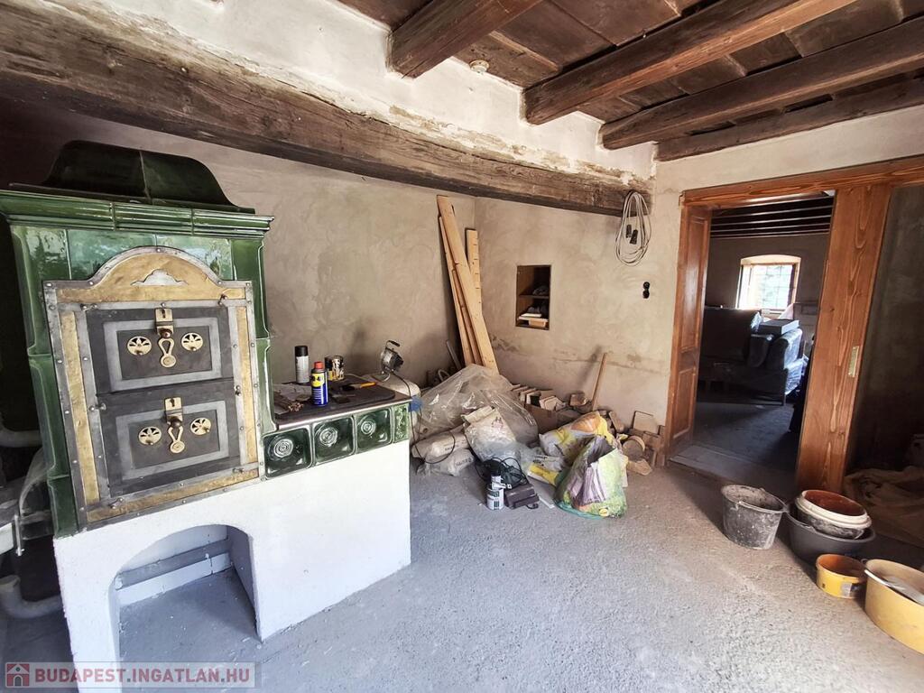 Az ingatlanba belépve a konyhába érkezünk, ahol egy mázas kemencét építettek, mely főzésre/sütésre és az ingatlan fűtését is ellátja, ha a padlófűtéssel és a radiátorokkal összekötésre kerül. Balra nyíló nappali helyiségben egy kandalló építés megkezdődött, amely kialakításnak köszönhetően szintén az egész ingatlan fűtésére alkalmas. Az utcafronti szoba kiválóan alkalmas hálószobának, a tetőtérben még egy gyerekszoba kialakítását megkezdték, igény szerint a tetőtér további beépítésre is alkalmas. Az ingatlanban még egy kamra, egy külön wc és fürdőszoba + wc kialakítása is megkezdődött. A gazdasági épület irányába is tovább bővíthető az ingatlan. A garázs méretének köszönhetően akár 3 autónak is helyt biztosíthat.