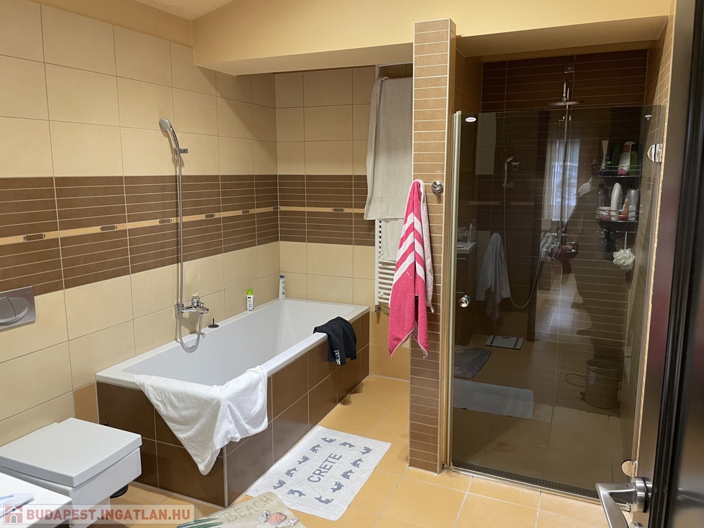 Két szobához tartozik fürdőszoba + wc, egyikben zuhany kabin, másikban fürdőkád és zuhany kabin található. Az előszobánál található egy vendég wc is.