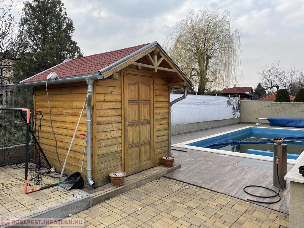 Az udvar a bejárattól a hátsó részig, ahol egy 8,5 méter X 4,0 méter-es teljes gépészettel ellátott medence is található végig térkövezve van!