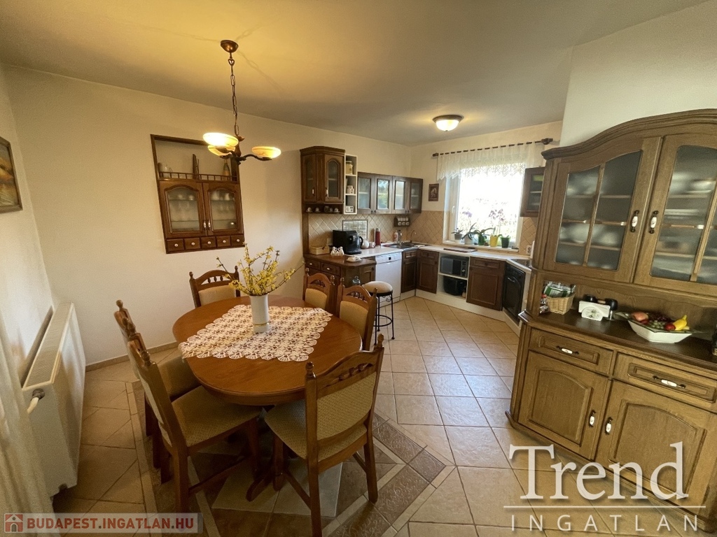 Az ingatlan egyik része 1984-ben épült, majd 1987-ben bővítették, falazata B30-as téglából készült, a tető 2007-ben lett felújítva, új héjazatot kapott Bramac cseréppel lett fedve. A földszinten előszoba, nappali, közlekedő folyosó, két nagy méretű hálószoba, étkező + konyha, fürdőszoba (sarokkád), külön álló wc található. Az emeleten nappali, két szoba, gardrób szoba, fürdőszoba (zuhany+wc), terasz kapott helyet. A földszinten az összes nyílászáró ki lett cserélve, az emeleten az utca felől még az eredetileg beépítettek vannak, a kertre nézők cserélve lettek. A fűtés vegyes tüzelésű kazánról, illetve 3 éve beépített BOSCH kondenzációs gázkazánról működik radiátor hőleadókon keresztül.