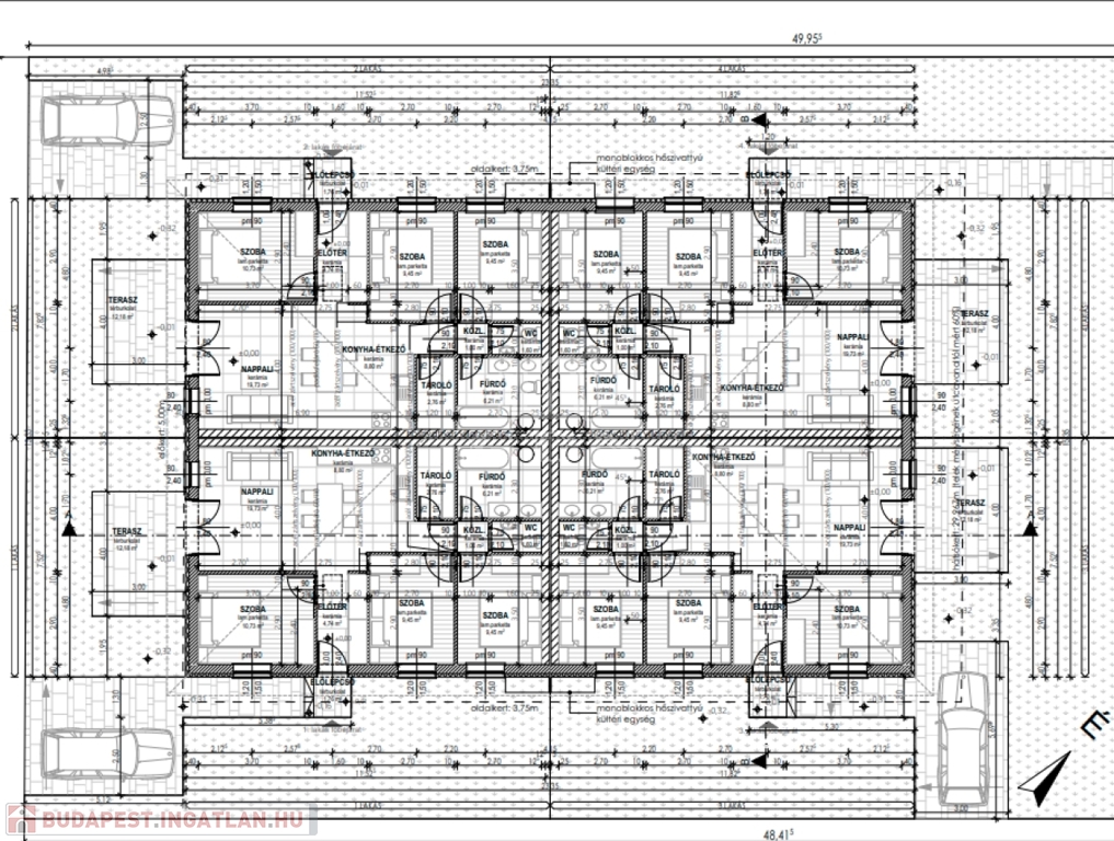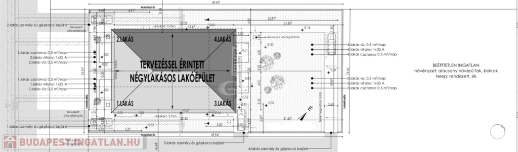 - lakásonként 1 autónak térkövezett beálló, egyéb rész murvázva,