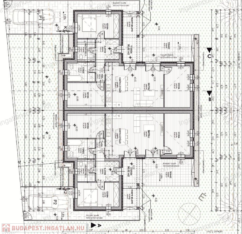 Az épületben két, egyenként 90 m2 hasznos alapterületű, KERTKAPCSOLATOS lakás került kialakításra (1. lakás: 575 m2, 2. lakás: 550 m2 kertkapcsolattal). Mindkét otthonhoz SAJÁT KÜLTÉRI GÉPKOCSI BEÁLLÓ tartozik. A lakások ELRENDEZÉSE PRAKTIKUS: 3 KÜLÖNÁLLÓ SZOBA, tágas nappali, étkező, MODERN konyha, fürdőszoba, háztartási helyiség és közvetlen KERTKAPCSOLATOS TERASZ.