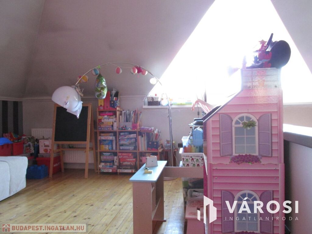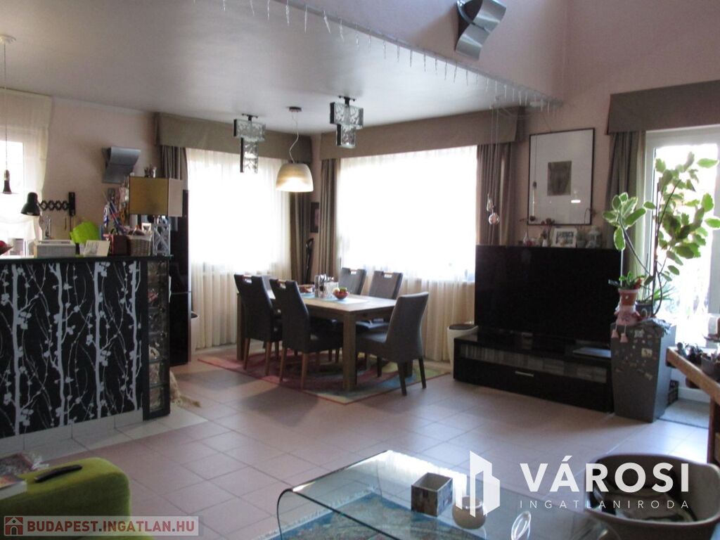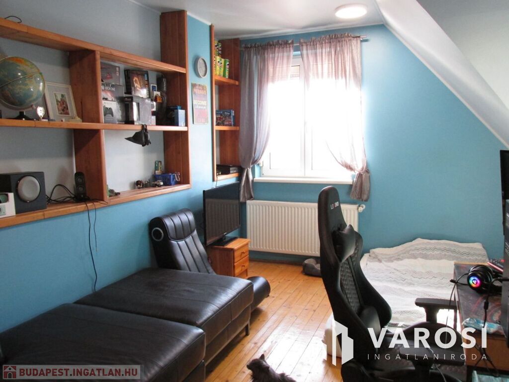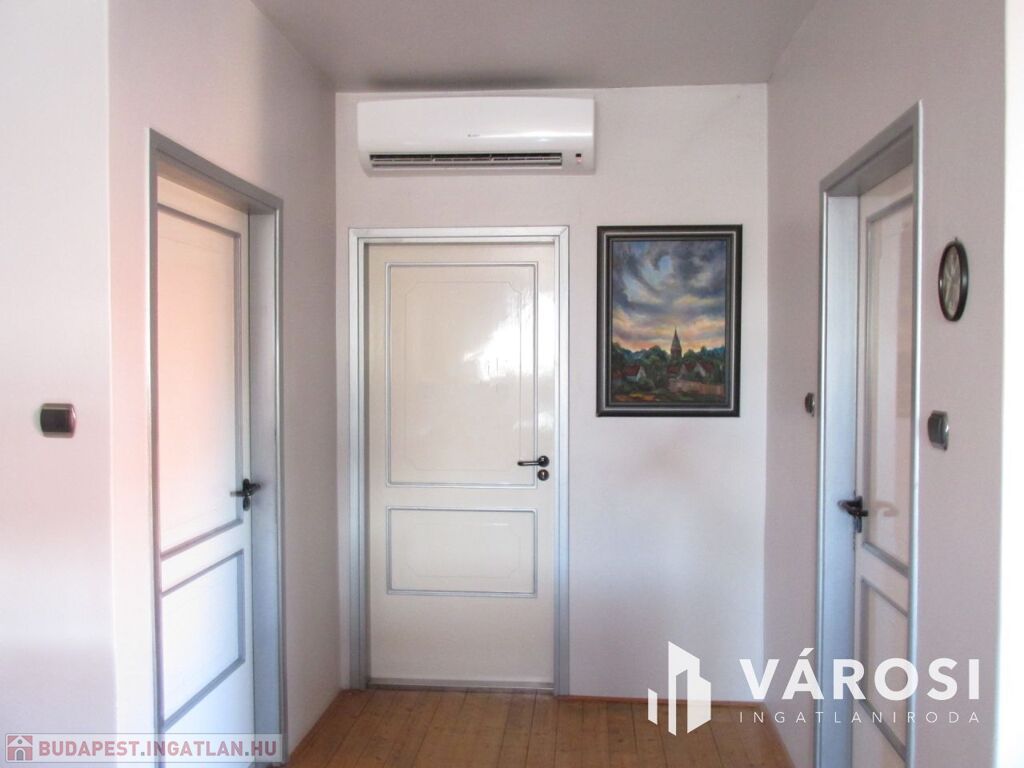 Az ingatlanban három szoba, két fürdőszoba, egy amerikai konyhás nappali, egy másik nappali, egy gyerekszoba, egy spejz, egy mosókonyha és egy gardróbszoba található, valamint egy 20 m²-es műhely az udvar végében lett megépítve. Az ingatlan helyiségei rendkívül kreatívan lettek kialakítva. Egyik fürdőszoba a földszinten van, amely zuhanyzóval lett ellátva, a másik pedig az emeleten, amelyben fürdőkád található. A földszinti fürdőből nyílik a mosókonyha, ami egy WC-vel és egy beépített szekrénnyel lett kiegészítve. A másik WC az emeleten lévő fürdőszobában van. Az egyik szoba szintén praktikusan ki lett egészítve egy beépített szekrénnyel, amelynek a külső része az előtérből nyitható, ez cipősszekrényként funkcionál. Az otthon melegéről gázcirkó gondoskodik, a hőleadás a földszinten padlófűtésen keresztül, az emeleten pedig radiátorok segítségével történik. A nyári hőségben két klíma is lehetőséget nyújt a lakás hűtésére. A külső nyílászárók műanyagból, a belsők pedig fából készültek. Az épület falazata és a födém megfelelően szigetelt. Az ereszcsatorna két éve lett kicserélve.