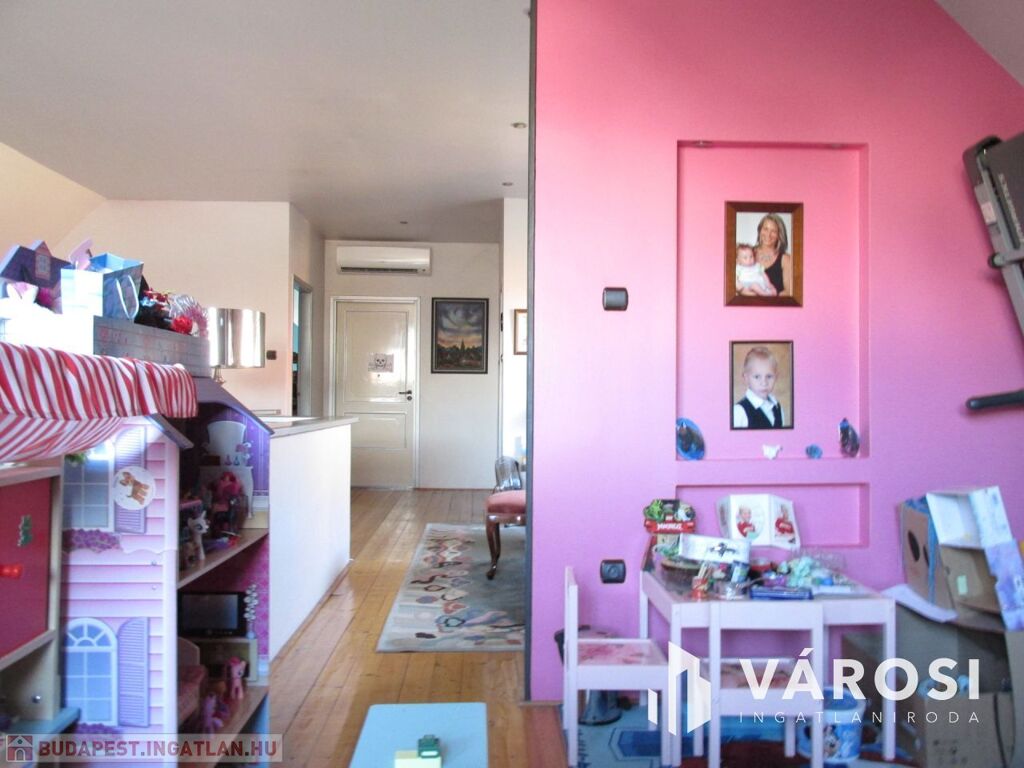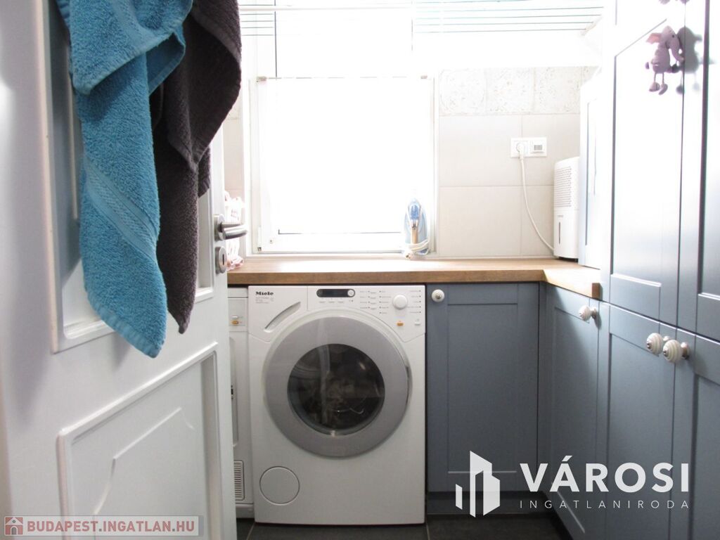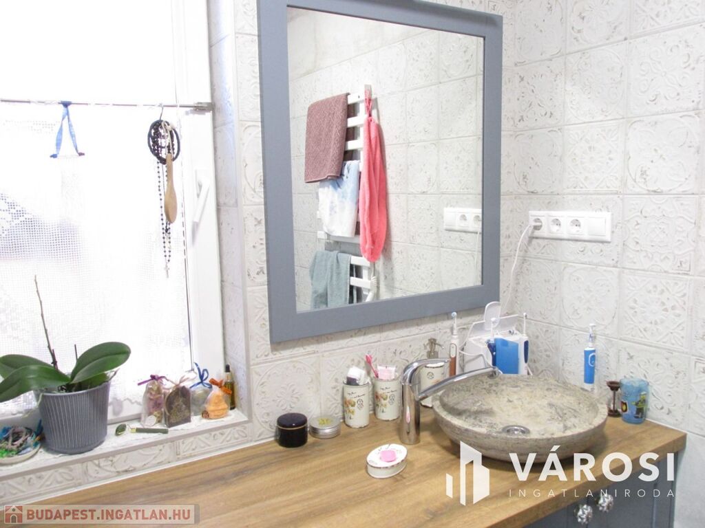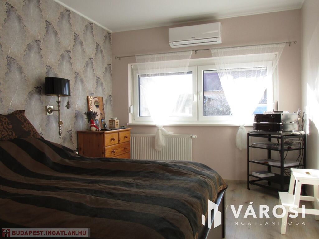 Az ingatlanban három szoba, két fürdőszoba, egy amerikai konyhás nappali, egy másik nappali, egy gyerekszoba, egy spejz, egy mosókonyha és egy gardróbszoba található, valamint egy 20 m²-es műhely az udvar végében lett megépítve. Az ingatlan helyiségei rendkívül kreatívan lettek kialakítva. Egyik fürdőszoba a földszinten van, amely zuhanyzóval lett ellátva, a másik pedig az emeleten, amelyben fürdőkád található. A földszinti fürdőből nyílik a mosókonyha, ami egy WC-vel és egy beépített szekrénnyel lett kiegészítve. A másik WC az emeleten lévő fürdőszobában van. Az egyik szoba szintén praktikusan ki lett egészítve egy beépített szekrénnyel, amelynek a külső része az előtérből nyitható, ez cipősszekrényként funkcionál. Az otthon melegéről gázcirkó gondoskodik, a hőleadás a földszinten padlófűtésen keresztül, az emeleten pedig radiátorok segítségével történik. A nyári hőségben két klíma is lehetőséget nyújt a lakás hűtésére. A külső nyílászárók műanyagból, a belsők pedig fából készültek. Az épület falazata és a födém megfelelően szigetelt. Az ereszcsatorna két éve lett kicserélve.