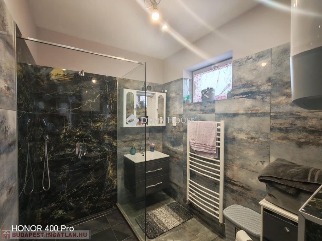 Eladásra kínálunk Érd Vincellér részén egy 150 m2-es családi házat, ami rengeteg lehetőséget rejt magában. Akár családi életre, akár befektetés szempontjából tökéletes választás, mind a telek, mind a ház adottságait tekintve.Az ingatlan elrendezése: -Földszint: előszoba, nappali, konyha+étkező, háztartási helyiség, WC, tároló, terasz, garázs -Emelet: 3 szoba, nappali+kis konyha rész, fürdőszoba+WC, erkély+ 1 fedett tároló amely 9 m2A garázson kivül legalább 4 autó beállási lehetőség, amit 2db oldalt nyíló nagy kapun + egy toló ajtós nagykapun keresztül lehet megközelíteni, illetve külön bejáratú zárható kiskapu is rendelkezésre áll.Az emeleti részen az elmúlt évben teljes körű felújítás történt, új műanyag nyílászárok, teljesen új fürdőszoba, festés, szerelvényezés, kartonozás, burkolás, elektromos padlófűtés kialakítása Wifis vezérlővel, minden helyiségben külön termosztáttal ellátva, új radiátorok programozható termosztáttal, beépített spot lámpák, hütő fűtő légkondiciónálók ( a nappali rész burkolása folyamatban) A képeken látható ami már kész, az nagy precizítással, szakszerűen, ízlésesen elkészített.Földszinten ugyancsak új műanyag ablakok, és bejárati ajtó cseréje megtörtént, több lehetőség is van itt a terek kialakítására, mivel jó adottságokkal rendelkezik.Riasztó rendszer kiépítve csak rá kell kötni. Az új lemez fedésű tető tavalyi évben lett kész, amin 5 KW-os napelem rendszer lett kiépítve 10 KW-os akkumlátorral, fűtése -25 fokig fűtő klimák, a H tarifa intézése folyamatban van.Műszaki adatok:-30 téglából épült-beton födémes-beton alap-Új fém lemez tető-Nemes vakolat-Új műanyag nyílászárok-Fűtése: fali gázkazán radiátoros hőleadással ( új radiátorok programozható termosztáttal), elektromos padlófűtés Wifis vezérlővel a felső emeleten így télen is meleg és otthonos.-Az emeleten a meleg vizet Ariston okos bojler szolgáltatja.-5KW-os napelem rendszer 10 KW-os akkumlátorral, fűtése -25 fokig fűtő klímák-A ház szép és világos belső elrendezésének köszönhetően napfény árasztja el a tereket, ami pozítiv és meleg légkört teremt. A felújítás során modern igényeket tartják szem előtt, és ami fontos minőségi anyagokkal dolgoznak, így az új tulajdonos saját ízlése szerint formálhatja tovább. A hozzá tartozó telek rengeteg lehetőséget rejt magában, legyen szó kertészkedésről, gyermek játszótérről vagy akár kerti partí helyszínéről.Szomszédság és a környék nagyon jó.Környéken megtalálható: iskola, óvoda, bölcsöde, spar, zöldséges, felnőtt és gyermek orvosi rendelő, barkács bolt, pizzériázó, pékség.Közlekedése mint tömegközlekedéssel, mint autóval tökéletes. Várom megtisztelő hívását ha felkeltette érdeklődését!