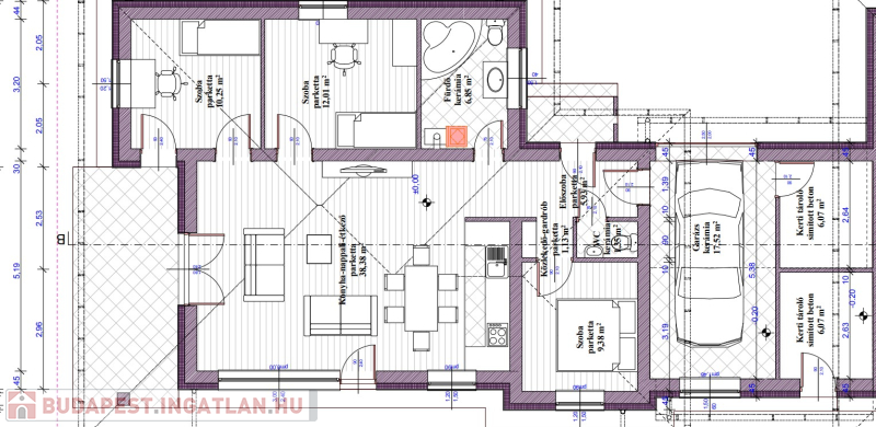 Kiváló adottságú telek előnyeit figyelembe véve alaposan átgondolt tervezés alapján épül az ingatlan benapozottsága optimális.