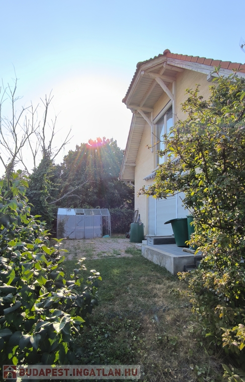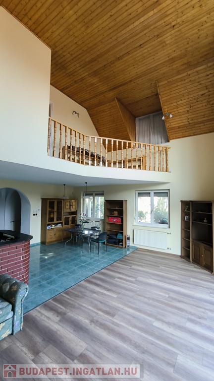 Eladó Érd legjobb részén, Érdligeten, azonnal költözhető családi ház! Az épület tágas, napfényes, 176 m2 hasznos alapterületű. A kertes családi ház gáz-cirkó fűtéses, ?rezsivédett?, kényelmes, bármikor költözhető. Fedett tornácát és alsó szintjét felújíttatták. A földszinten galériás nappali-étkező, hálószoba, külön WC és fürdőszoba található. A folyosóról kamra és a nagy, szerelőaknás garázs nyílnak. Az emeleten dolgozó és könyvtár célra használt galéria, saját fürdőszoba, gyerekszoba, gardrób szoba, nappali, és egy igazán tágas, erkélyes hálószoba találhatók.