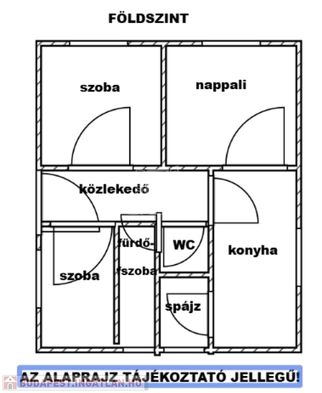 - földszint: 2 szoba, nappali, konyha, spájz, fürdőszoba, WC, közlekedő, lépcsőház,