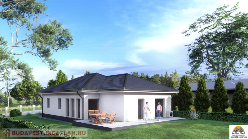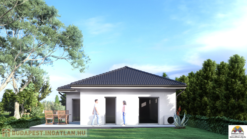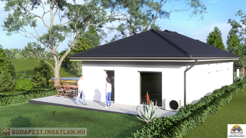 főfal: 30 cm tégla, 15 cm dryvit szigetelés, műanyag nyílászárók, fűtés: padlófűtés + hőszivattyú,