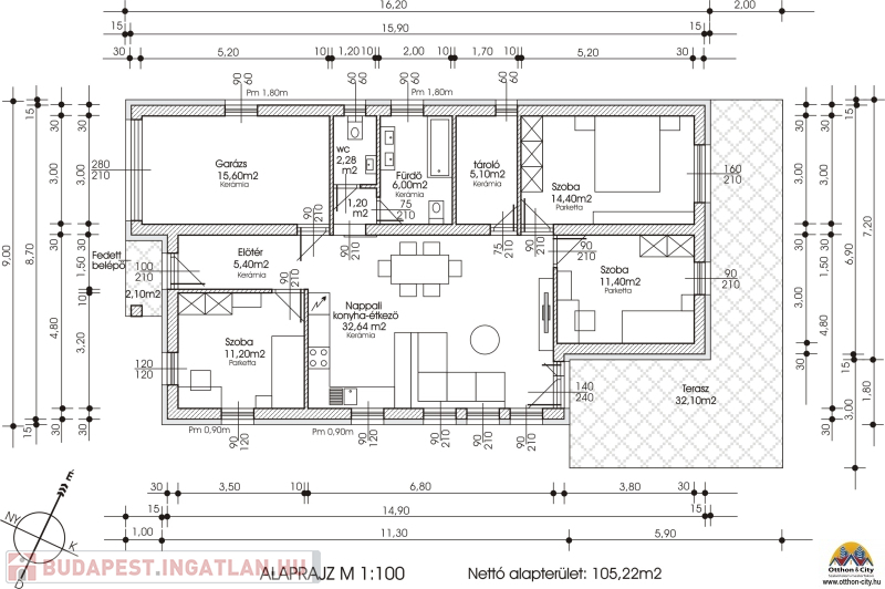 szobák: 14,5 nm,14,5, 11,5 nm.