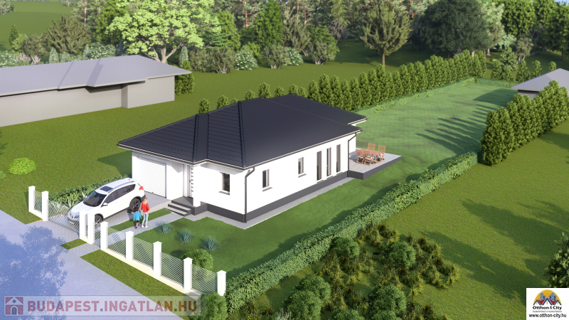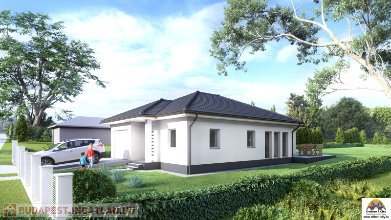 Érd csendes részén mellékutcában, eladó egy 120 nm-es, garázsos , 4 szobás új építésű családi ház nagy terasszal, 1100 nm-es telekkel.