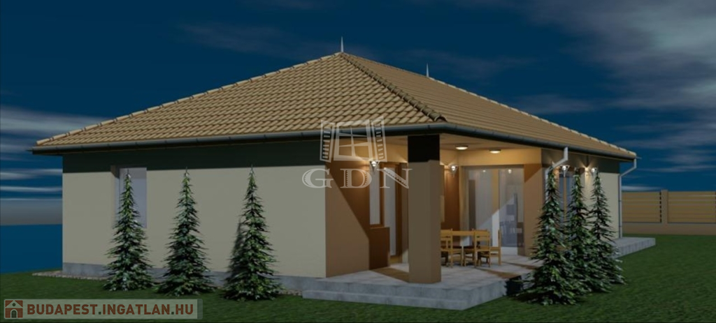 AZ ÉPÜLET beton sávalapra épül. Főfalak 30 cm porotherm téglából készülnek +15 cm dryvit szigeteléssel. Válaszfalak 10 cm téglából. A külső nyílászárók műanyag szerkezetűek, 3 rétegű üvegezéssel ellátva, rejtett redőnytok előkészítéssel. A födém fa szerkezetű, közetgyapot szigeteléssel. A tető cserép fedéssel készül.