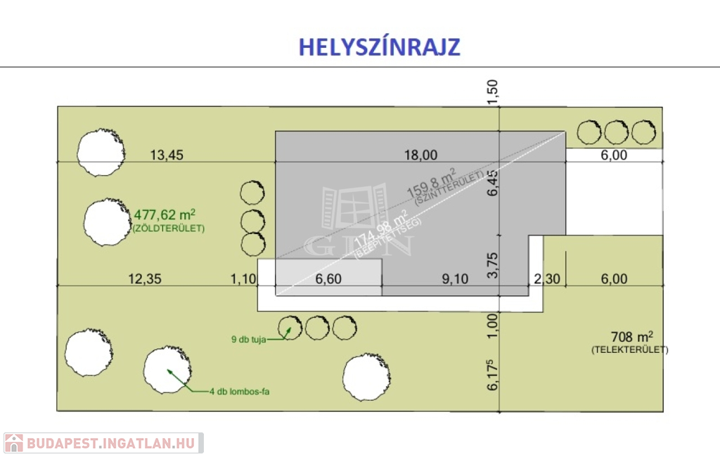 A ház nettó 125 nm, plusz a 24 nm terasz. Mindez 708 nm telken.