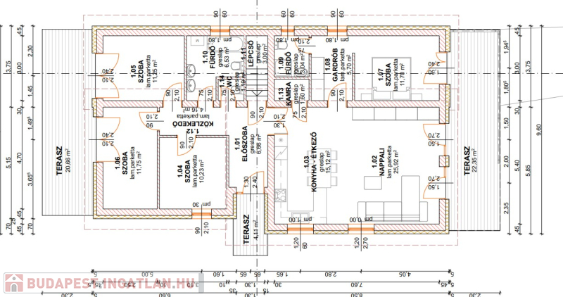 Szerkezeti leírás: Beton alap.Tégla 30-as főfalak + 15cm dryvit szigetelés. Ytong válaszfalak. A külső nyílászárók műanyag szerkezetűek. A belső nyílászárók választhatóak. A tető beton cseréppel fedett.Fűtés hőszivattyúval.