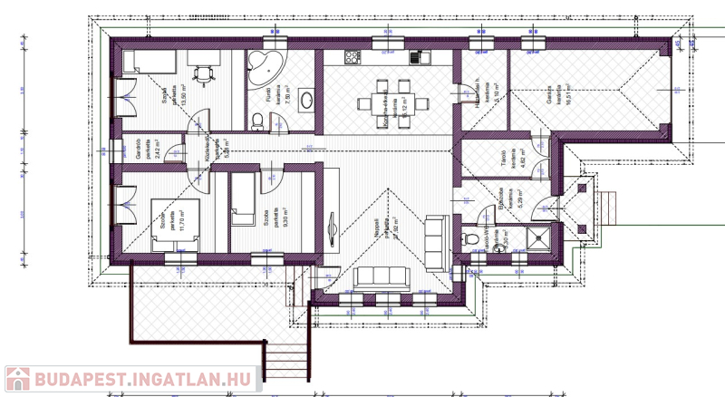 A ház – csakúgy, mint a kivitelező számtalan, megtekinthető referencia háza esetében is – magas minőségi anyagok felhasználásával és magas műszaki tartalommal épül.