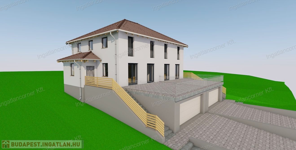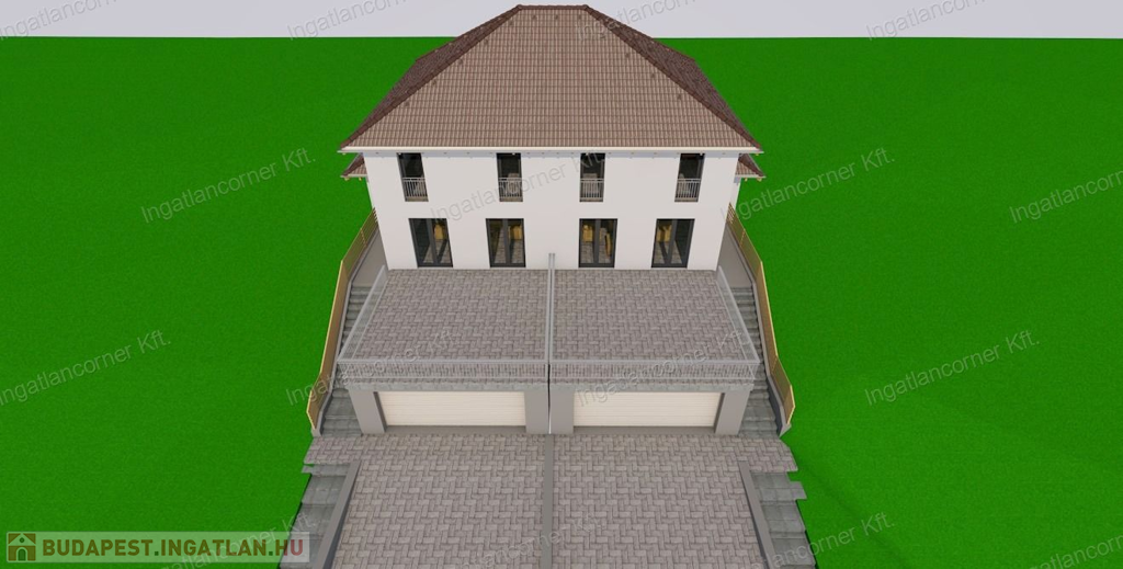 Érd, Érdliget – "Érd Rózsadombja", csendes, forgalommentes, zöldövezeti utcában, panorámás kilátással és erdős környezettel eladó egy háromszintes, nappali + 4 hálószobás, bruttó 210 m2-es (nettó 158 m2-es), duplagarázsos ikerházi lakás, saját 657 m2-es telekrésszel.