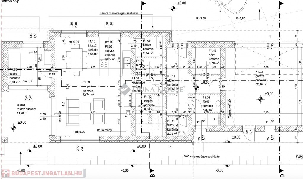 Műszaki adatok:- 30-as Leier tégla, 10 cm válaszfalak- 15 cm homlokzati szigetelés- Hőszivattyú 200 literes használati meleg víz tartállyal- H- tarifás mérőszekrény kialakítás