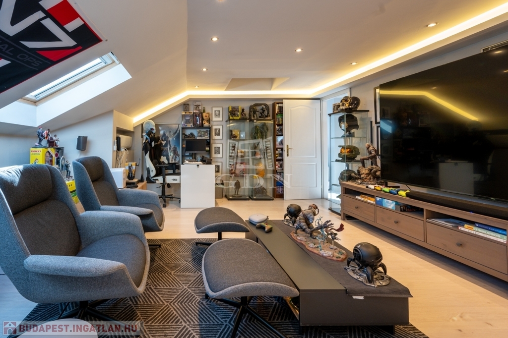 A KÉT LAKRÉSZT 15 NM-ES PIHENŐ SZOBA KÖTI ÖSSZE, amely igazi "chill" helyiség.