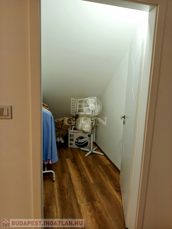 A tetőtérbe a LED égő csíkkal megvilágított lépcsőn jutunk fel. Ezen a szinten három, 20,0 nm, 14,95 nm, 13,5 nm szobát találunk, valamint egy 15,2 nm- es helységet amelyből a felső helyiségek nyílnak. Tea konyha 13,2 nm, gardrób helyiség 2,42 nm, kádas fürdő + WC 17,2 nm valamint egy önálló WC 1,38 nm találunk. A ház bejárata előtt egy 31,0 nm-es fedett terasz van ami alatt egy tároló helyiség került kialakításra.