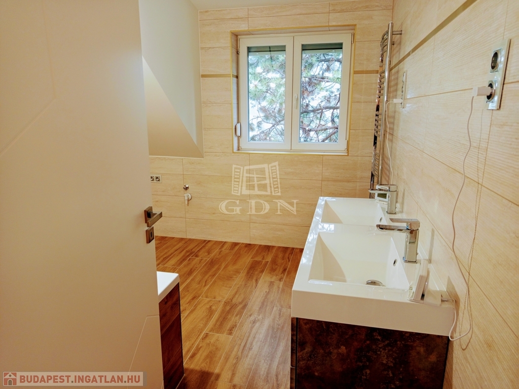 ÉRD Parkváros-Fenyves csendes részén ELADÓ egy teljesen felújított 195 négyzetméteres, három szintes családi ház! Az alagsorban , kétállású garázs és az épület gépészete található 39,67 nm-en. Elektromos töltésrendszer, két gépjármű részére, a bejárati ajtó elektromos, távirányítóval működik. A garázsba megérkezve lépcső visz fel a földszintre. Ezen a szinten egy zuhanyozós fürdő szoba + WC 6,4 nm, egy 16,88 nm szoba amelyből egy kádas, WC fürdő szoba 5,83 nm, nyílik. A nappali 28,11 nm, melyből a konyhába és az étkezőbe 20,83 nm es jutunk. Ezen a szinten még található az előszoba 5,08 nm, közlekedő 6,97 nm, éléskamra 2,86 nm és egy gardrób 2,15 nm-es helység.