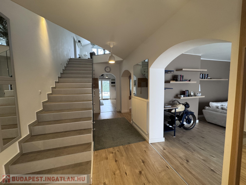 Érd Felső Parkvárosban megújuló energiával, 10 kw-os napelem rendszerrel szerelt 2 szintes, összesen 240 m2-es, nappali + 5 szobás Luxus családi ház, teljes berendezéssel eladó!