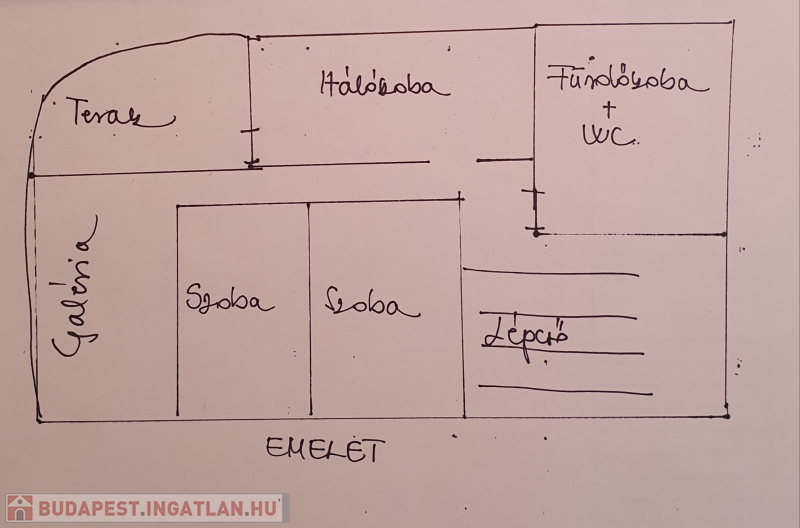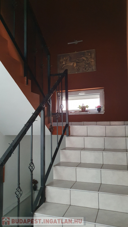 Az emeleten közlekedő, 3 szoba, gardrób, galéria, WC-s fürdő, közel 16 nm-es panorámás terasz található.