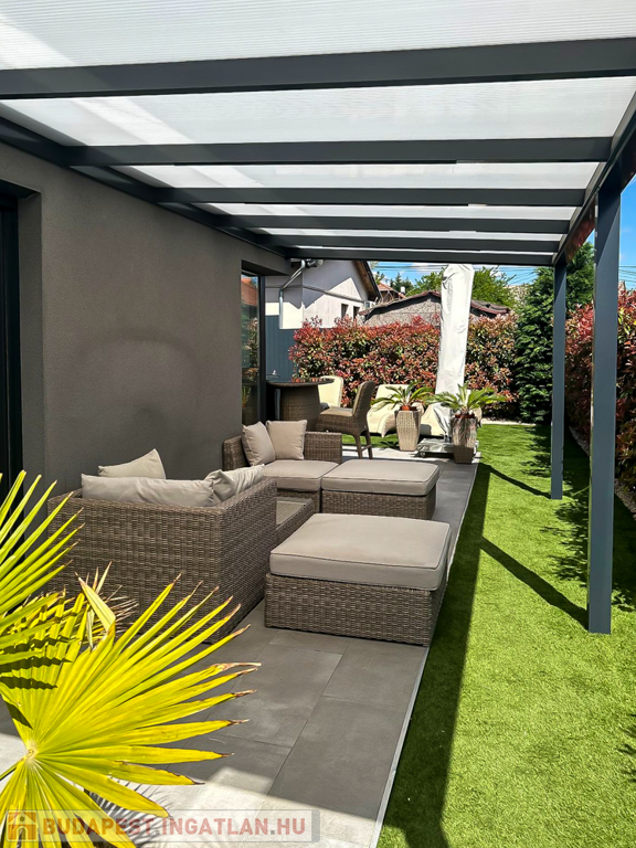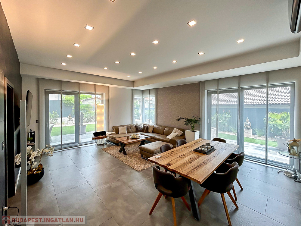 Az újszerű állapotban lévő ház nettó alapterülete 176 nm, melyből a lakótér 140 m2 és nappali+ három háló+ 2 fürdőszoba elrendezéssel. A házat körül ölelő teraszok, összesen 160 m2-el növelik meg az életteret és jórészt fedettek is.