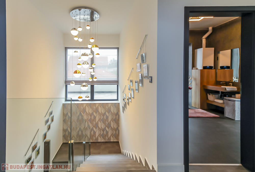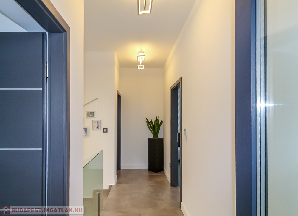 Nyílászárói háromrétegű üvegezésüek és elektromos redőnnyel felszereltek. A kert és garázsbejáró elektromosan mozgatható, a személybejáró kamerás kaputelefonnal ellátott. A biztonság jegyében: a ház biztonsági ajtóval, riasztóval, kamrarendszerrel egyaránt felszerelt.