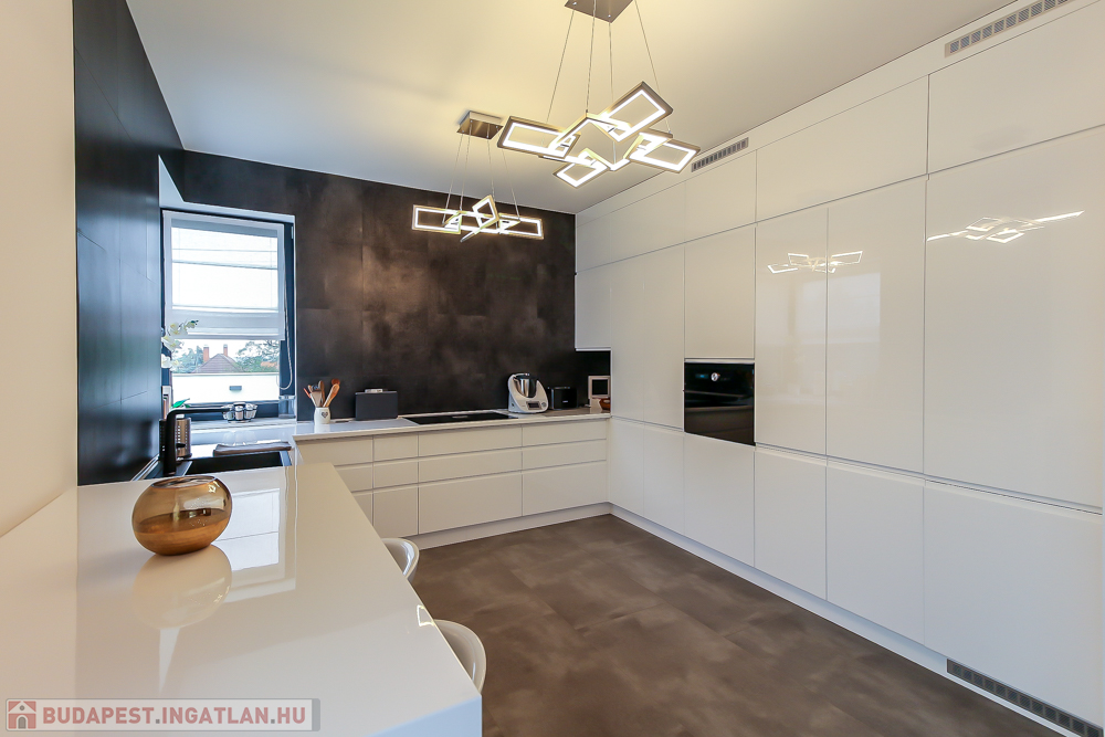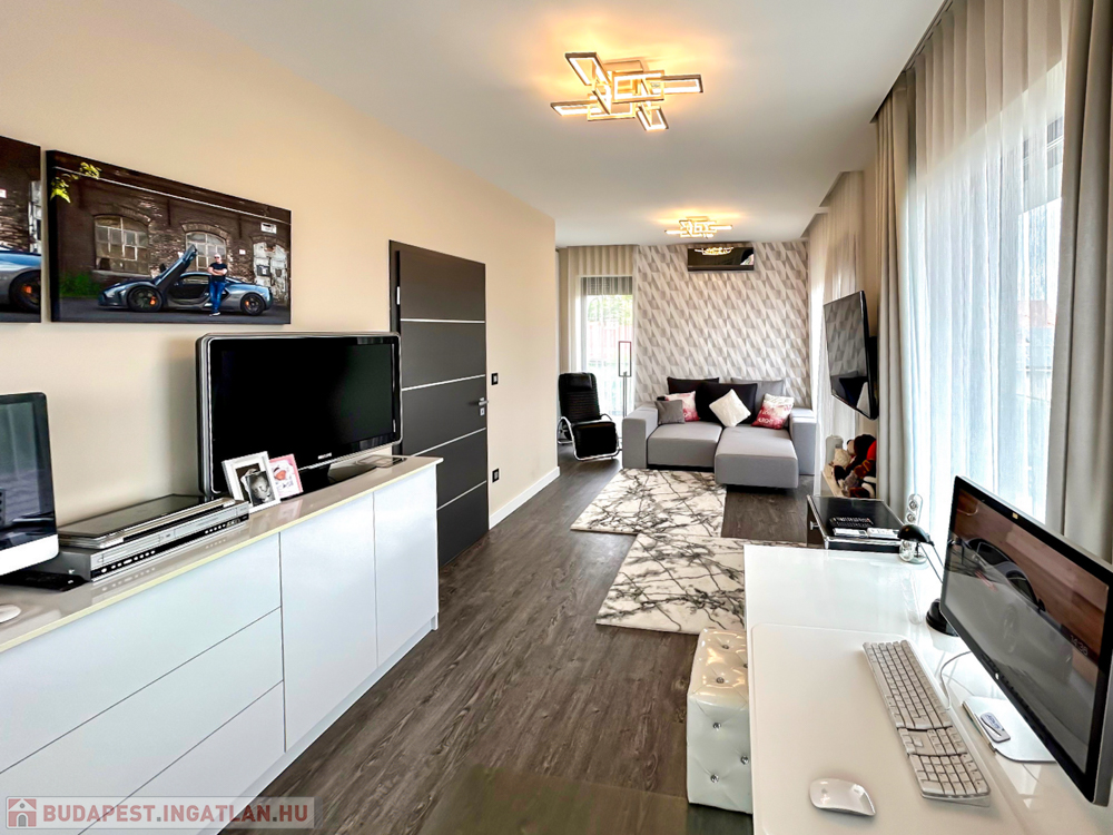 Meleg víz ellátása és fűtése kondenzációs kazánnal üzemel, utóbbi padlófűtésen keresztüli hőleadással. Az ingatlan természetesen klimatizált.