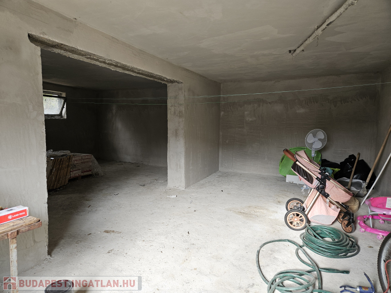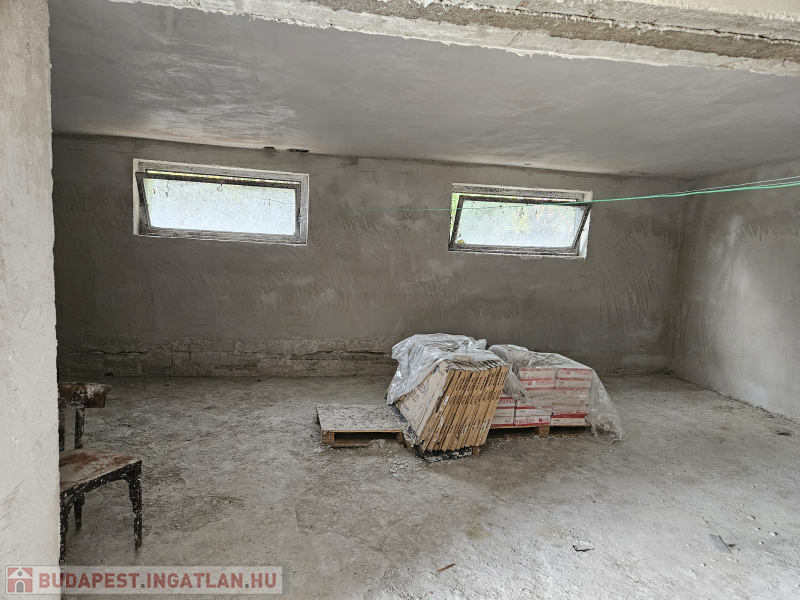 Földszint (60m2): 2 nagy térből áll, kialakításra vár, vakolt falak, új nyílászárók a bejárata mellett 8 nm-es tároló!