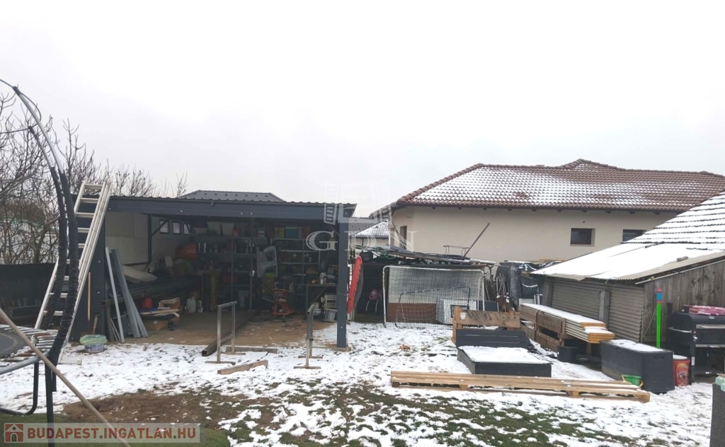 A tágas, 549 m²-es telek melléképületekkel ideális kikapcsolódásra, gyerekeknek játékra.