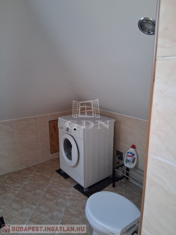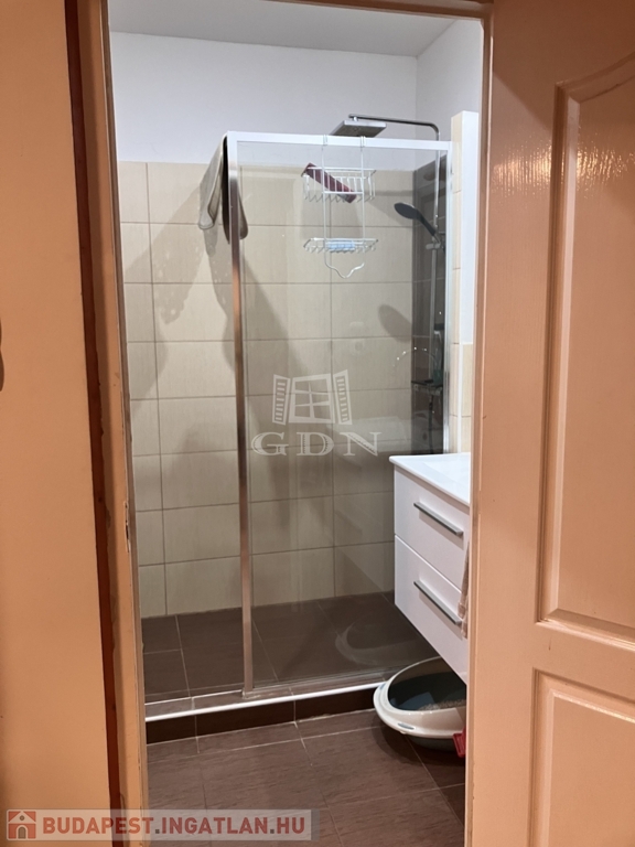 A fürdőszoba modern kialakítású, zuhanykabinnal, külön WC-vel, mosógép elhelyezési lehetőséggel.