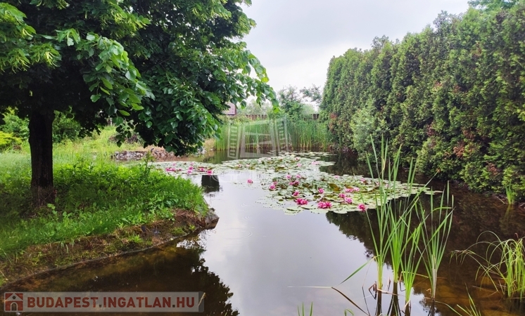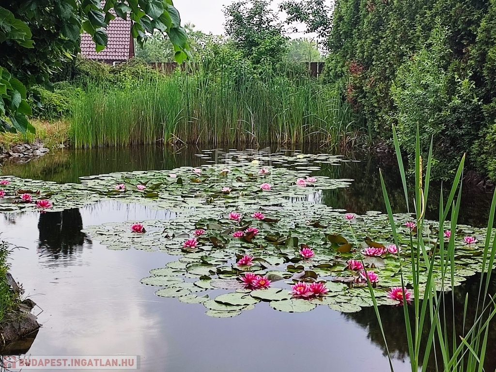 Az otthon csendes környezetben található, körülötte halastó, tavirózsák és örökzöldek teremtenek varázslatos hangulatot.