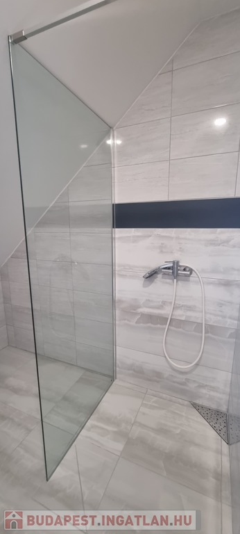 A felső szinten 2 hálószoba, tágas gardróbszoba, fürdőszoba épített zuhannyal és külön wc mosdóval található.
