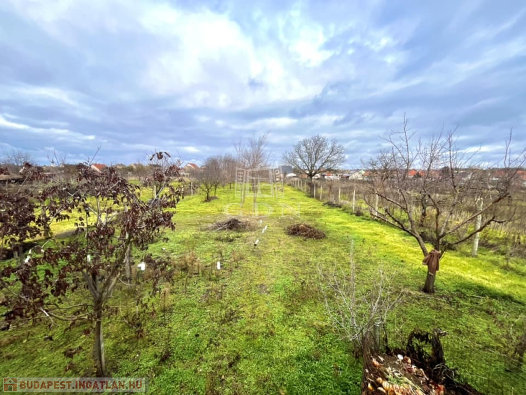 -veteményes kert, akácfák a telek végében
