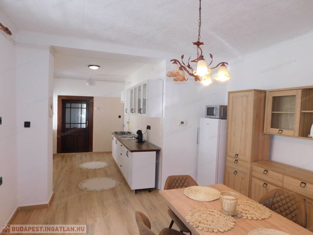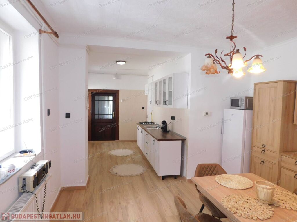 Azonnal költözhető felújított családi ház konyha - étkezővel, 2 hálószobával, külön bejáratú apartmannal, boltíves pincével a Kis-Balatontól 5000 méterre eladó.