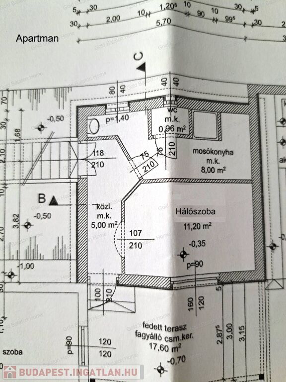 - a külön bejáratú apartman alapterülete 25 nm: közlekedő, hálószoba, mini konyha, zuhanyzó, mosdó, WC, fedett terasz, pincelejáró