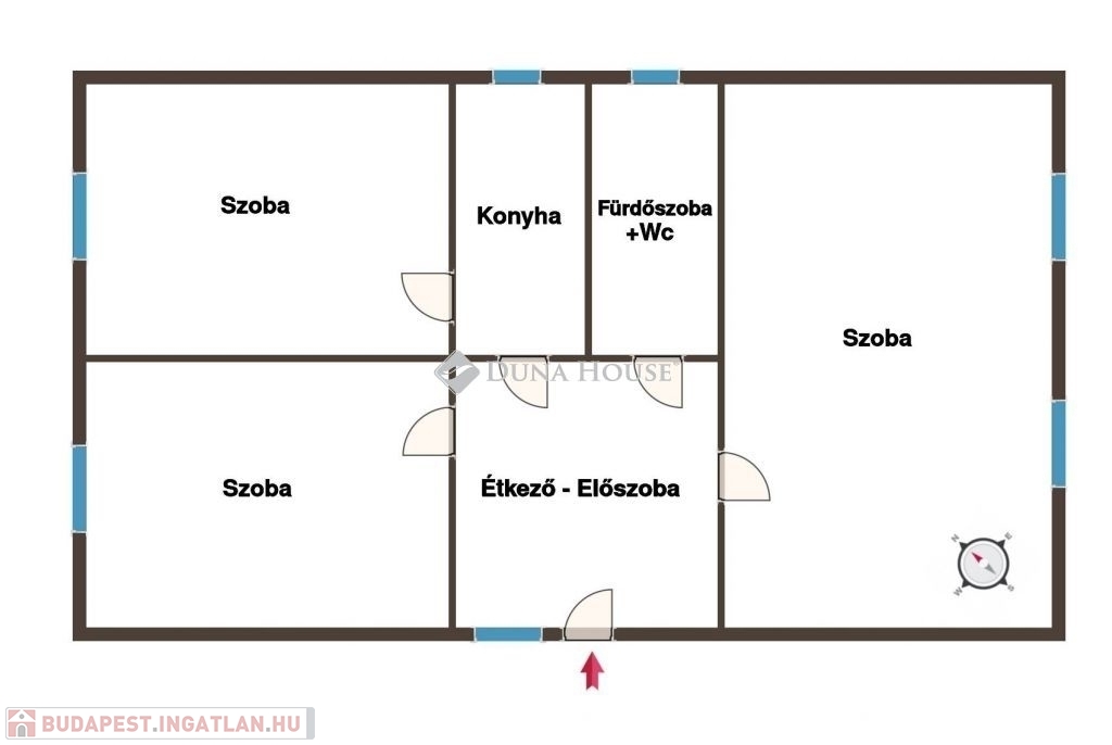Az ingatlanban 3 különnyíló szoba, egy akár nappalinak is használható étkező, egy konyha, és egy fürdőszoba+wc helyiségek kaptak helyet. A helyiségek mindegyike ablakos, így a ház fényviszonya, és szellőztethetősége is kitűnő.