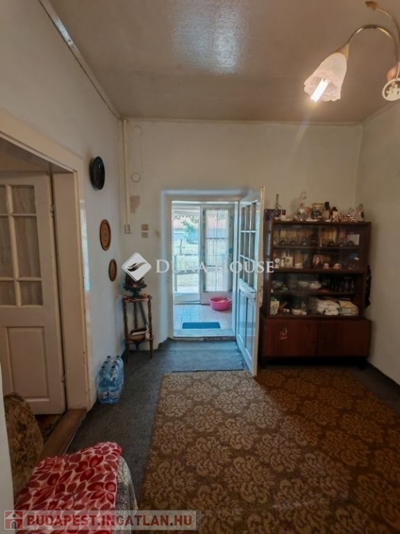 Eladó Pest vármegyében , Farmos településen egy felújítandó 77 nm -es családi ház 1252 nm es telekkel , mely teljesen körbekerített . Az ingatlan vegyes falazatú , cserép fedésű. Elosztása kettő szoba, nappali , előszoba , fürdő+wc. A kis nyári konyha külön épületben helyezkedik el a főépület mellett . Az ingatlan összközműves , a fűtést gázkonvektorok biztosítják . De egy nagyon szép állapotú cserép kályha is beépítésre került . A meleg vizet villanybojler adja. A telken egy fúrt kút is van , mely a tágas kert locsolását biztosítja . A burkolatok laminált padló , pvc , járólap . A nyílászárók régi típusúak , redőnnyel felszereltek. A főépület és a nyári konyha előtt is nyitott terasz található . Az ingatlan mellett gazdasági épület helyezkedik el , melyben tároló , füstölő , nagy pince , ól található. A kert méretéből adódóan , illetve a talaj minősége akár egy kis családi gazdaság fenntartását is biztosítja. A telken van szőlő , dió , bodza , körte , birsalma , meggy .Az ingatlan lokációja nagyon jó . A vasútállomás 5 perc sétára van . Farmos központi része 8-10 perc gyalogosan. Itt pedig Posta , közért , gyógyszertár , iskola , óvoda megtalálható.