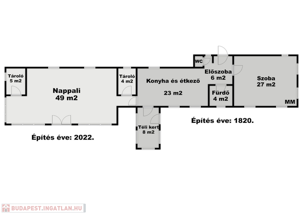 A 69 m2-es eredeti rész tömésfallal készült, mely kellemes klímát biztosít télen, nyáron.