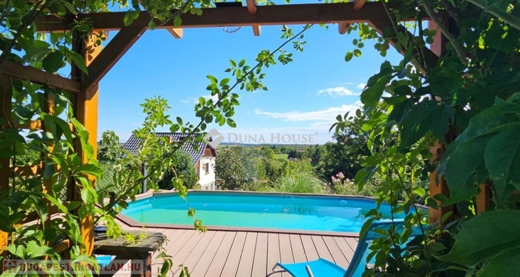 Az udvaron egy 7,6*3,6 m-es medence is helyet kapott, mellette örökpanorámás napozóterasz és kerti tusoló is kiépítésre került.