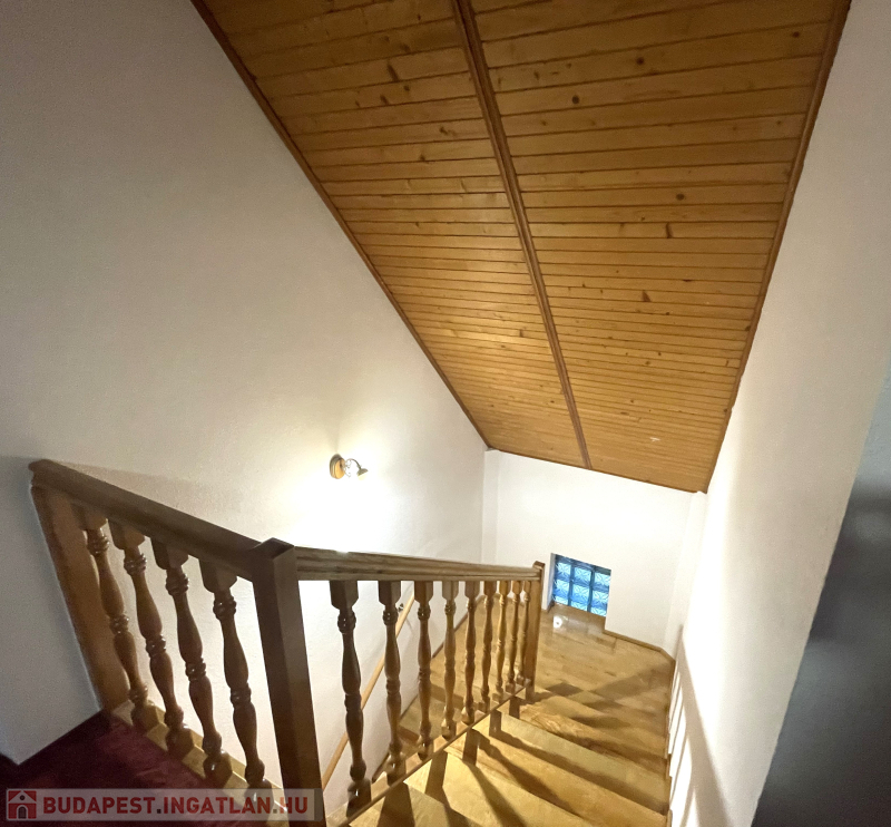 Az emeleten pedig négy hálószoba (10,8 m2, 15,84 m, és két 19,61 m2 méretűek), zuhanyzós fürdőszoba + WC, egy 20 m2-es közösségi tér kapott helyet, valamint két erkély is. Az egyikről balatoni részpanoráma is látható. A tetőtér kényelmes belmagassága miatt ezek a szobák is jól berendezhetőek.