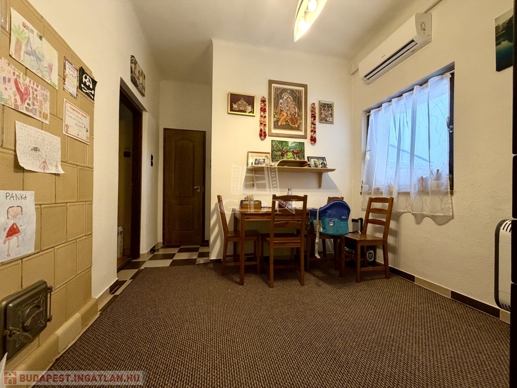 A kisházban radiátoros hőleadók vannak felszerelve, és külön gázcirkó biztosítja az ellátást.