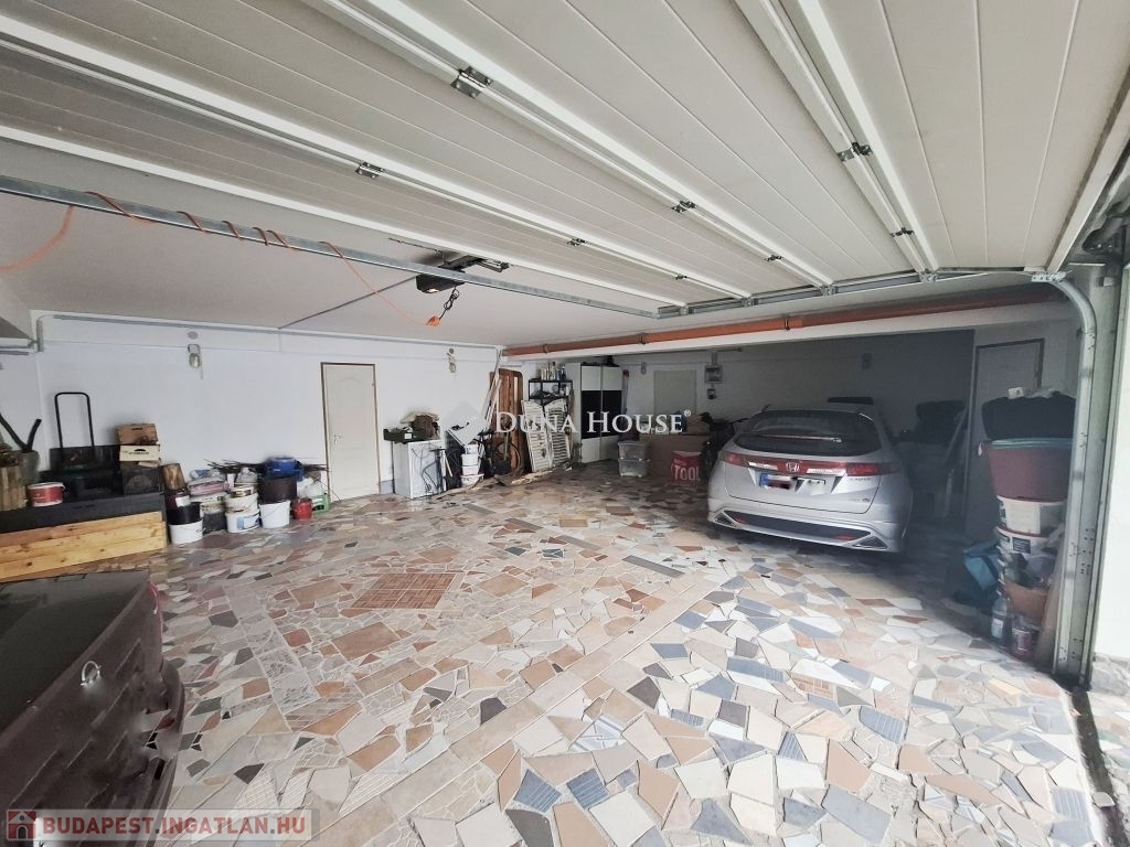 Extrák: fedett teremgarázs 2 autó számára, 3 tárolóhelyiség, közvetlen kijárás a saját kertrészre, utcafronti parkolási lehetőség